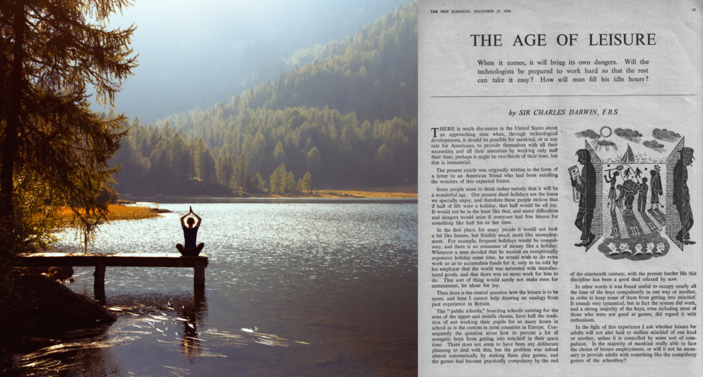 In an early issue of The New Scientist magazine (issue 6, December 27th, 1956), Sir Charles Darwin muses on the impending life of leisure that many Americans can expect.